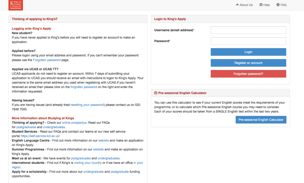 在準備好所有申請材料後,便可以上 King’s Apply 系統申請帳號送出申請了